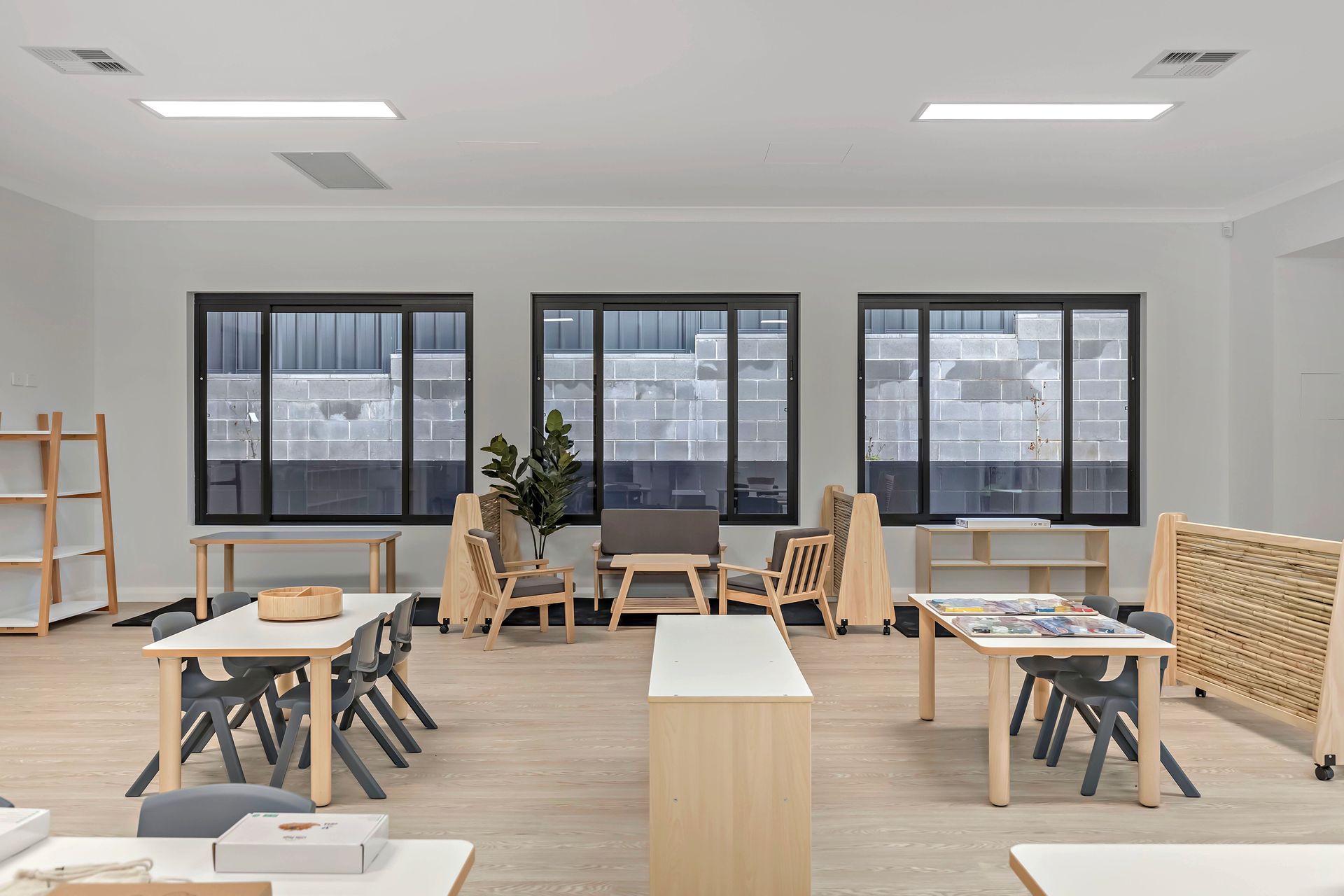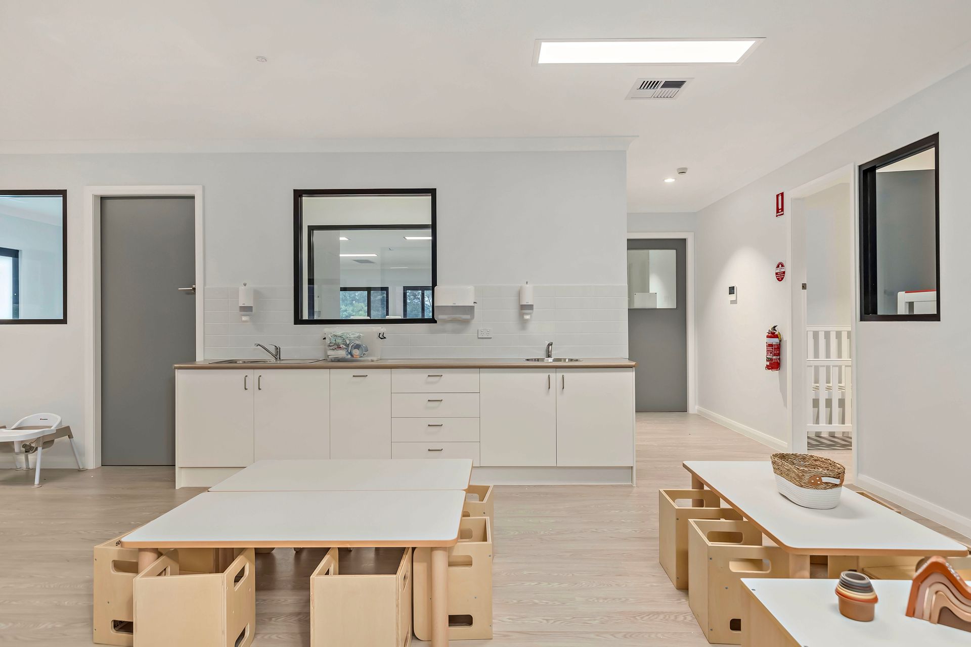 Picton Childcare Centre's construction involved significant infrastructure development, including the creation of a new street and laneway. The project also featured 800 sqm of landscaping, designed to provide a safe and engaging outdoor space for children. Inside, an extensive fit-out covered 600 sqm, ensuring a functional and welcoming environment. This included essential facilities such as nappy change areas, a stainless steel commercial kitchen, and various activity rooms. The original design did not meet childcare compliance requirements, necessitating updates to incorporate additional standards. The result is a fully compliant, modern facility that prioritizes safety and functionality for children.